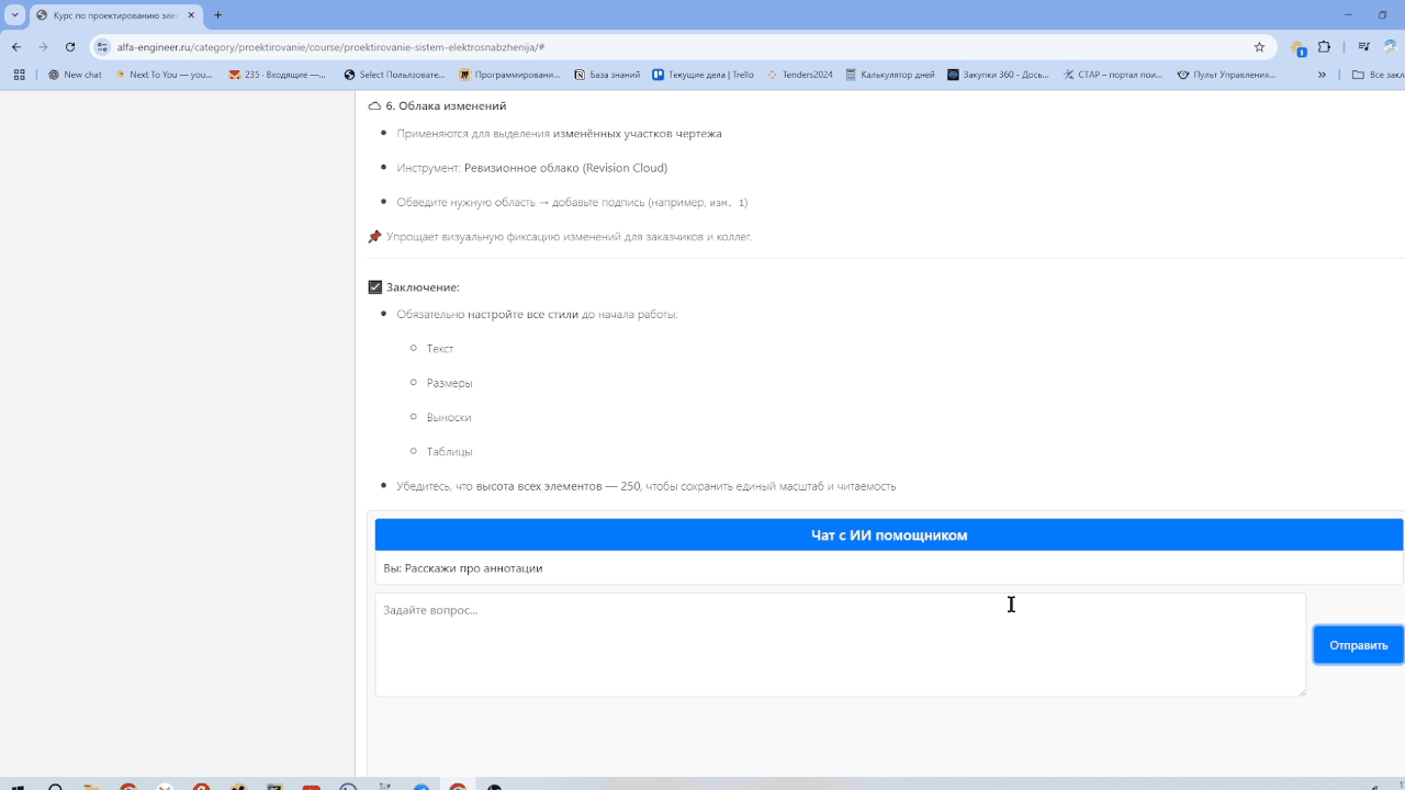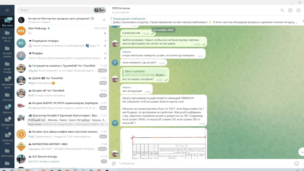 4. Общаетесь с единомышленниками в общем чате. Платформа объединяет активное сообщество проектировщиков — студентов, инженеров, фрилансеров и новичков. В общем чате вы можете обсуждать темы, делиться опытом, задавать вопросы и находить поддержку. Это живое профессиональное окружение помогает не только быстрее осваивать материал, но и вдохновляет, расширяет кругозор и даёт ощущение движения в правильном направлении. Здесь вы не просто учитесь — вы развиваетесь вместе с сообществом.